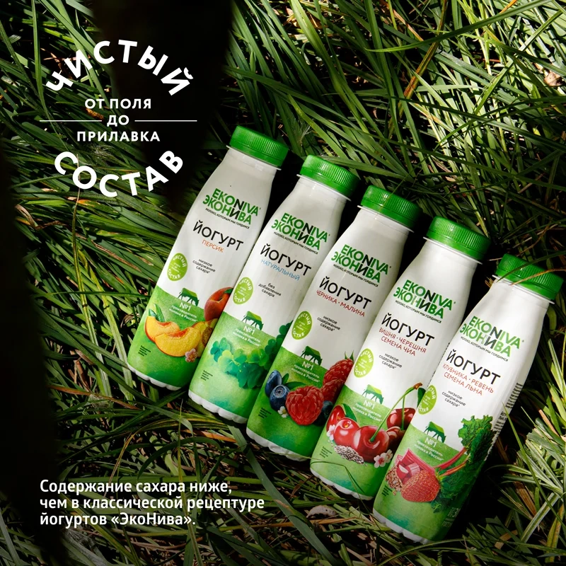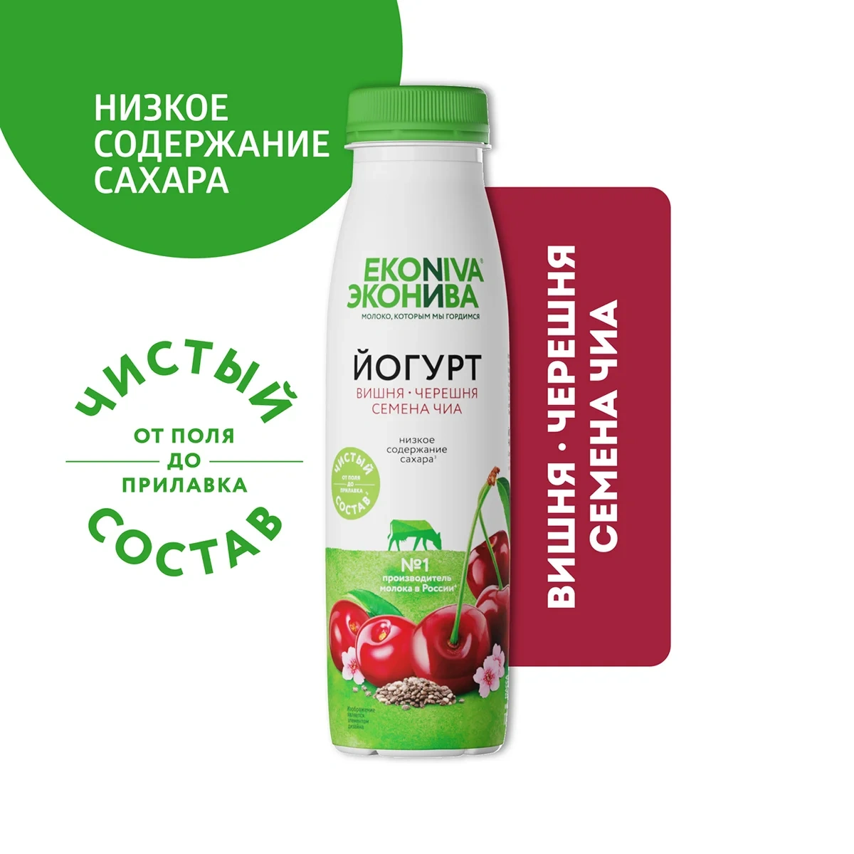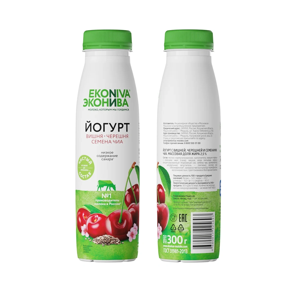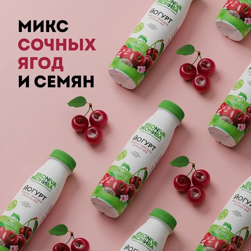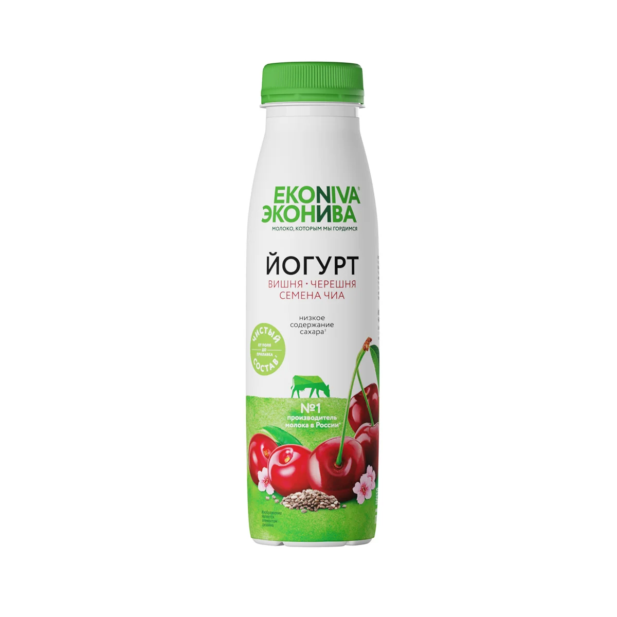 Йогурт питьевой Эконива с вишней, черешней и семенами чиа 2.5%, 300г
