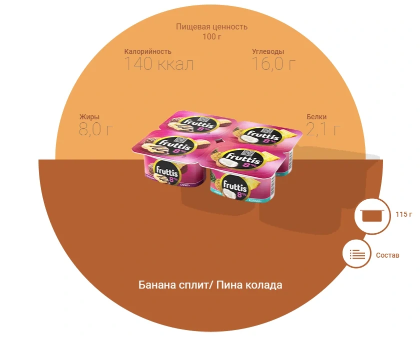 Йогурт Fruttis Суперэкстра банана-сплит/пина колада, 8%, 115г