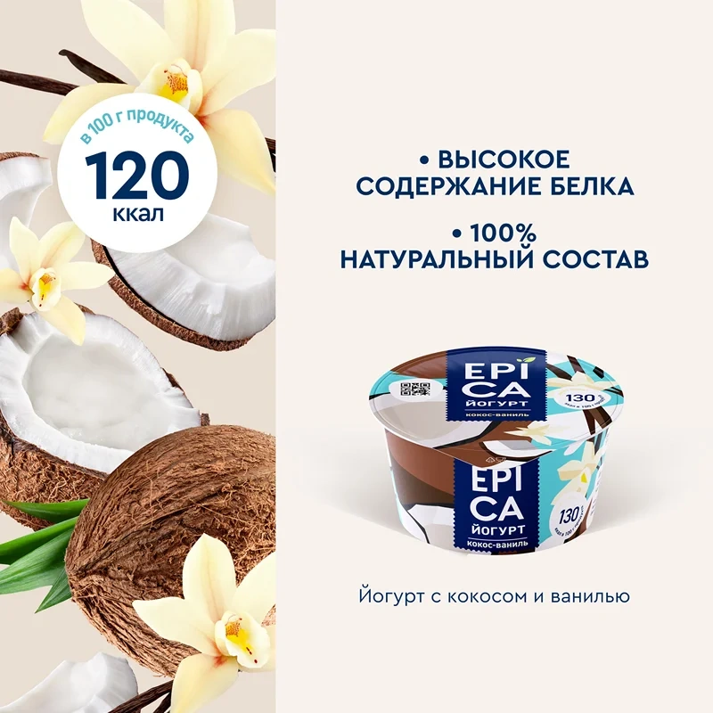Йогурт Epica кокос-ваниль, 6.3%, 130г