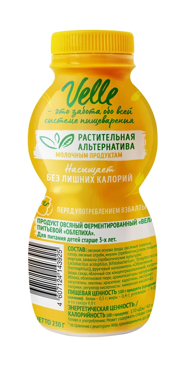 Питьевой растительный йогурт Velle Овсяный облепиха, 230г