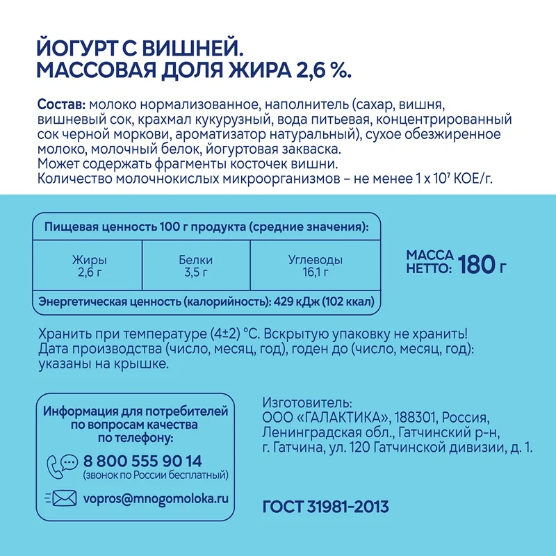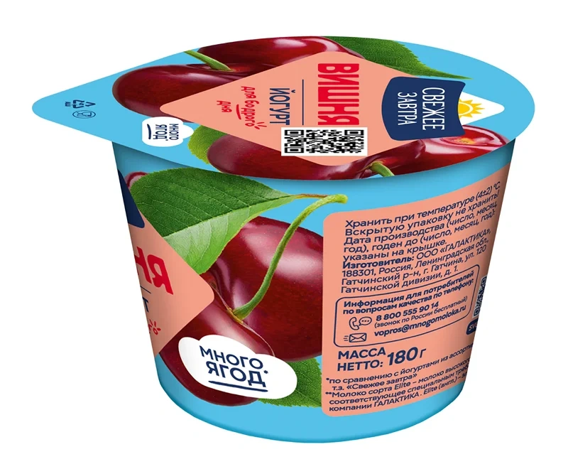 Йогурт Свежее завтра с вишней 2.6%, 180г