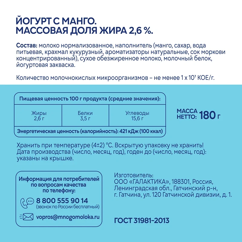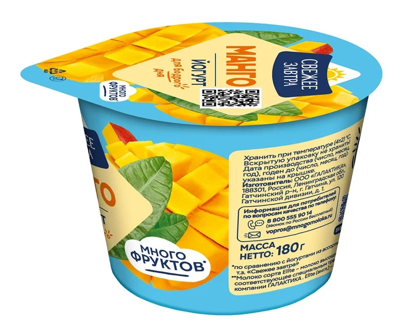 Йогурт Свежее завтра с манго 2.6%, 180г