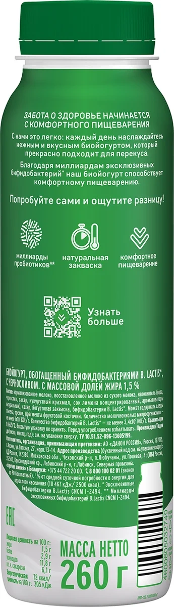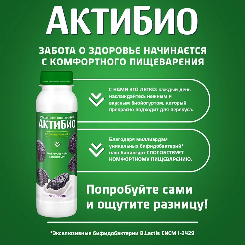 Йогурт питьевой Актибио чернослив 1.5%, 260г