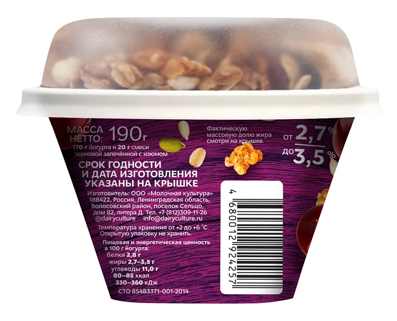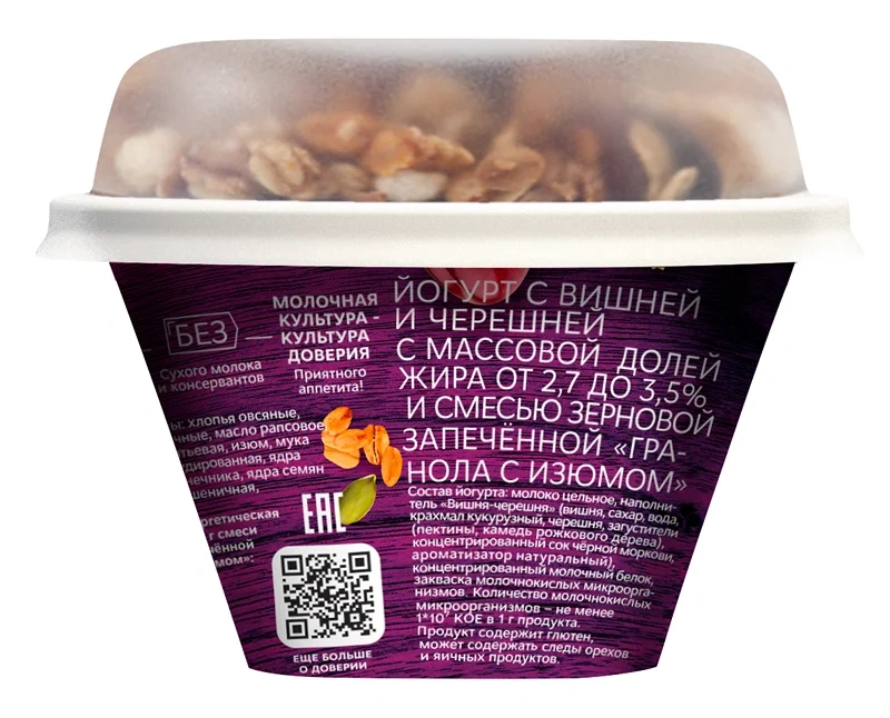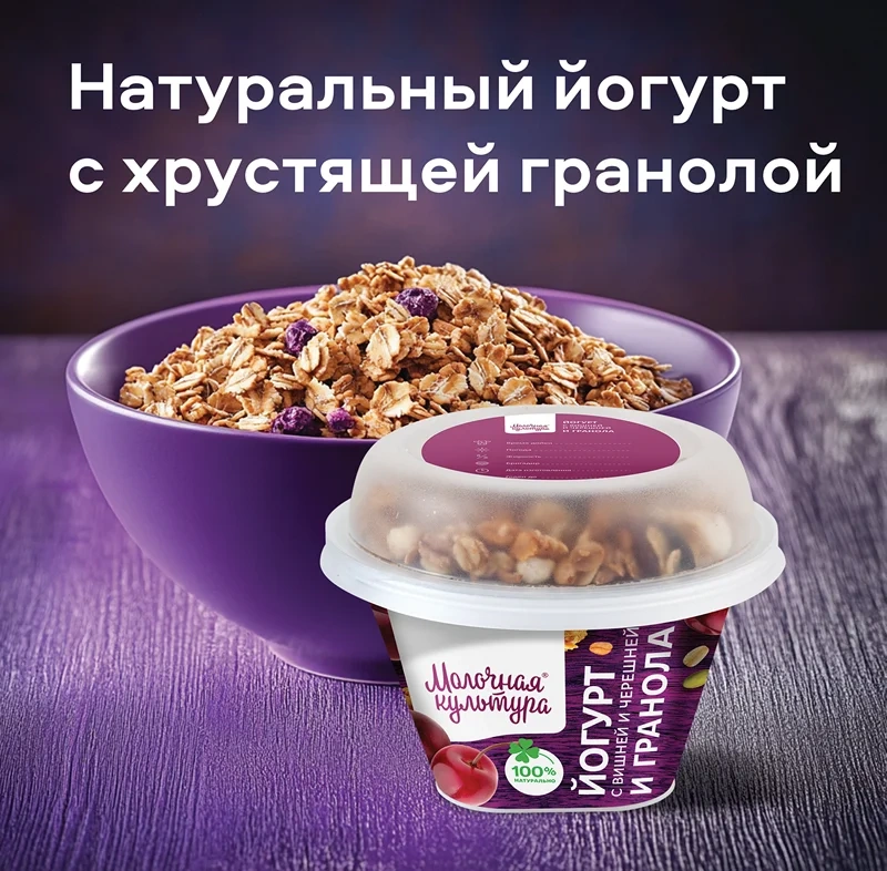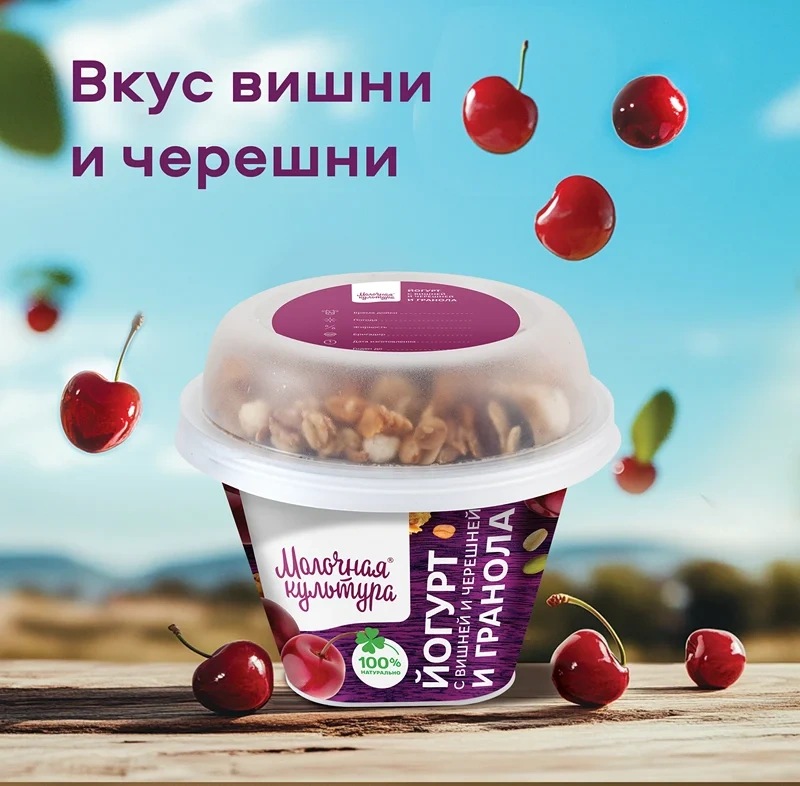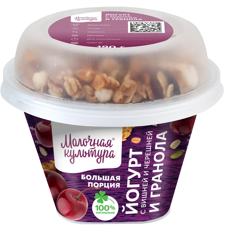 Йогурт Молочная культура вишня-гранола 2.7-3.5%, 190г