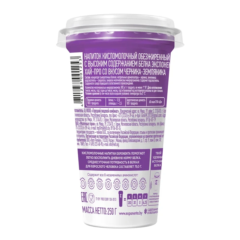 Напиток кисломолочный Exponenta High-pro Черника-земляника с высоким содержанием белка, 250г