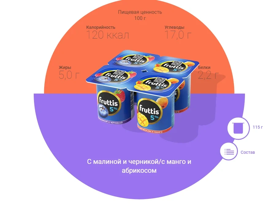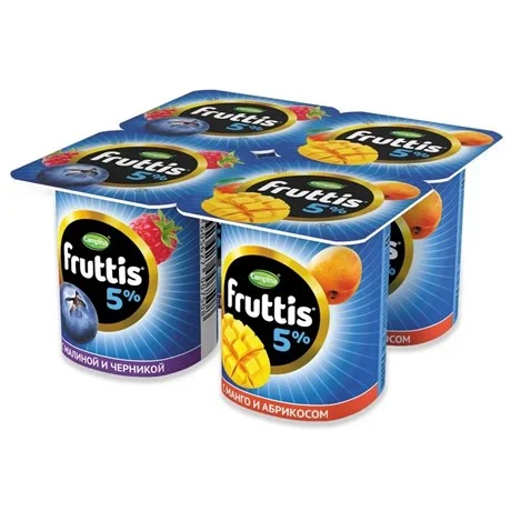 Йогурт Fruttis Сливочное лакомство малина-черника-абрикос-манго, 5%, 115г