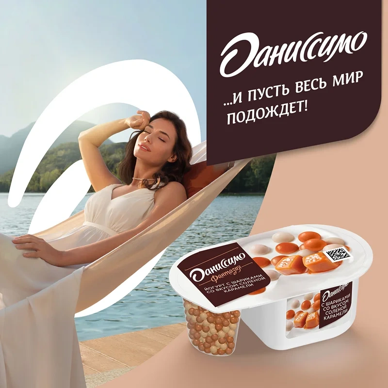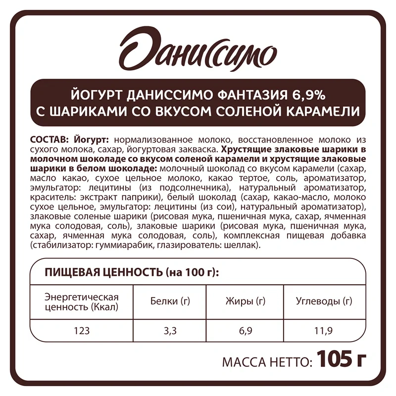 Йогурт Даниссимо Фантазия с хрустящими шариками со вкусом соленой карамели 6.9%, 105г