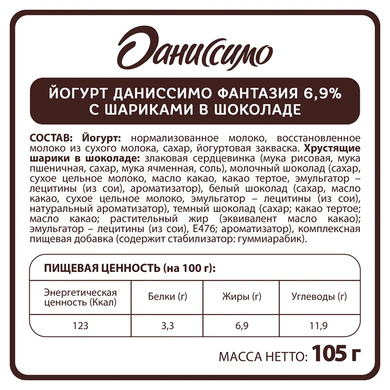 Йогурт Даниссимо Фантазия хрустящие шарики, 6.9%, 105г
