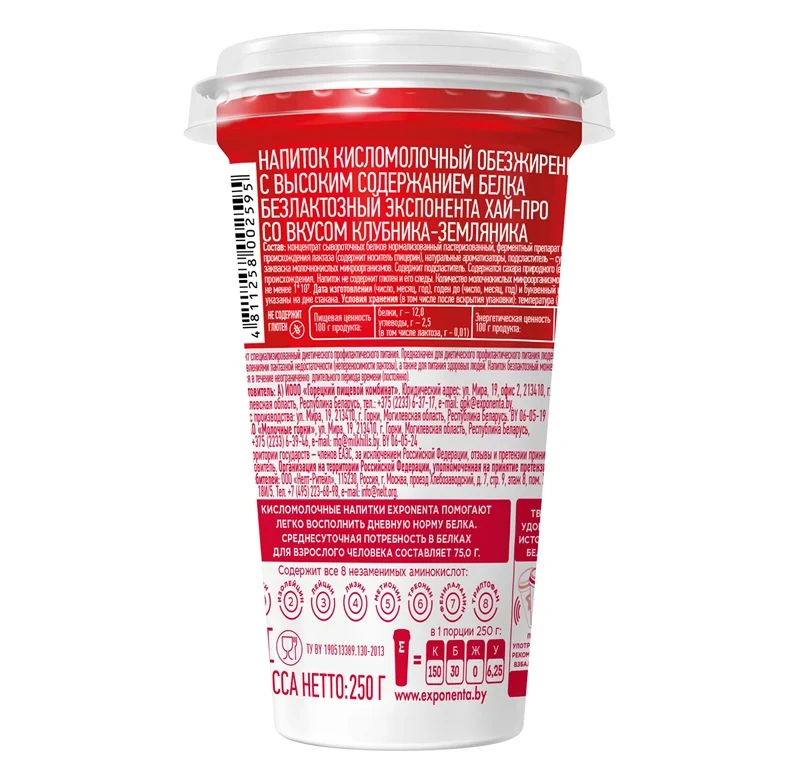 Напиток кисломолочный Exponenta High-pro Клубника-земляника обезжиренный, 250г
