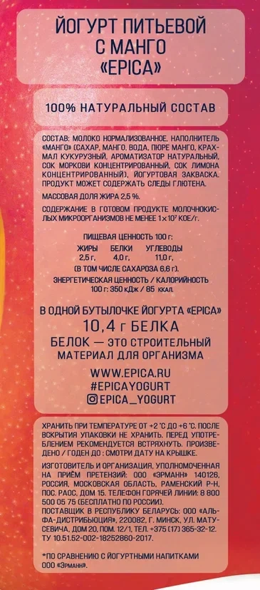 Йогурт питьевой Эрмигурт 1.2% персик-маракуйя, 290г
