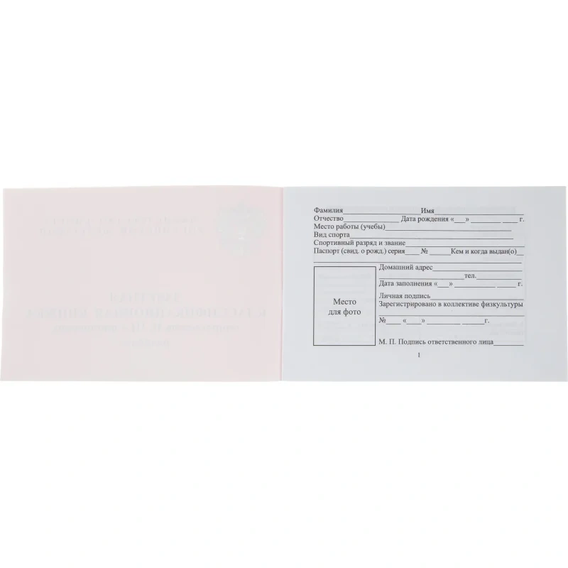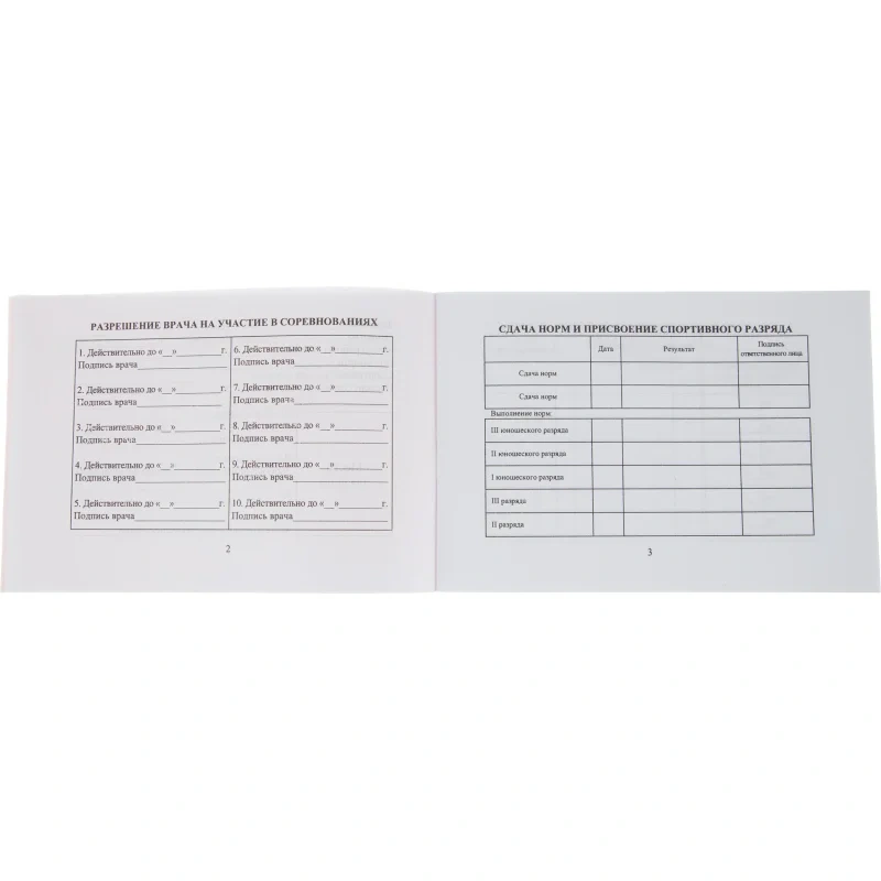 Зачетная книжка классификационная спортсменов II,III и юнош.разряд 10шт/уп