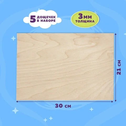 Заготовки для творчества, деревянные, без рисунков, 5 шт., 21х30 см, BRAUBERG HOBBY, 665313