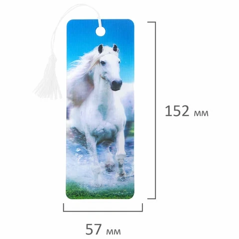 Закладка для книг Brauberg Белый конь, объемная с движением, шнурок-завязка