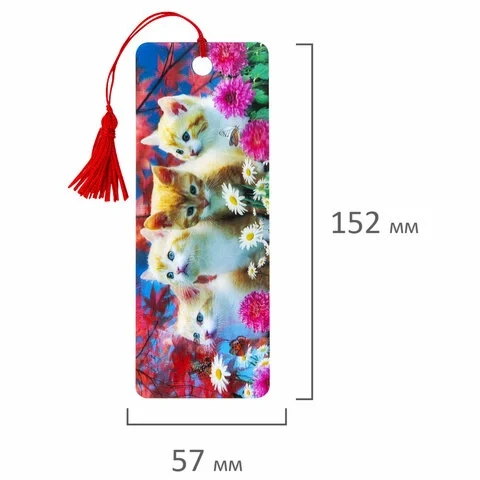 Закладка для книг Brauberg Котята, объемная с движением, шнурок-завязка