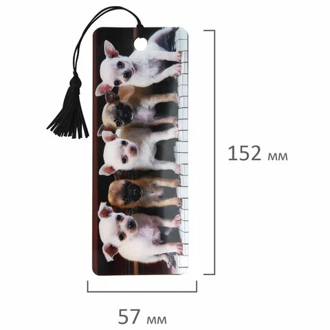 Закладка для книг Brauberg Милые щенки, объемная с движением, шнурок-завязка, с линейкой