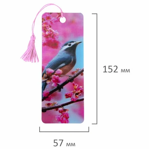 Закладка для книг Brauberg Птичка на ветке, объемная с движением, шнурок-завязка