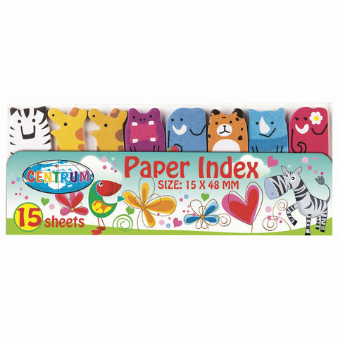 Закладки клейкие CENTRUM 'Зверушки' бумажные, 48х15 мм, 8 цветов х 15 листов, 88548