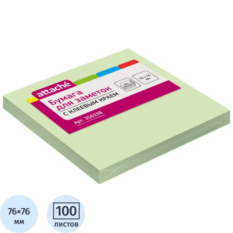 Стикеры Attache в формате 76×76 мм, салатового цвета. Идеально подойдут для сотрудни...