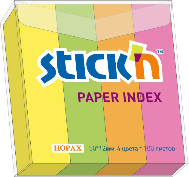 Клейкие закладки бумажные Stick'n Stick'n 4 цвета, 50х20мм, 200шт