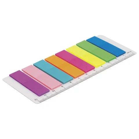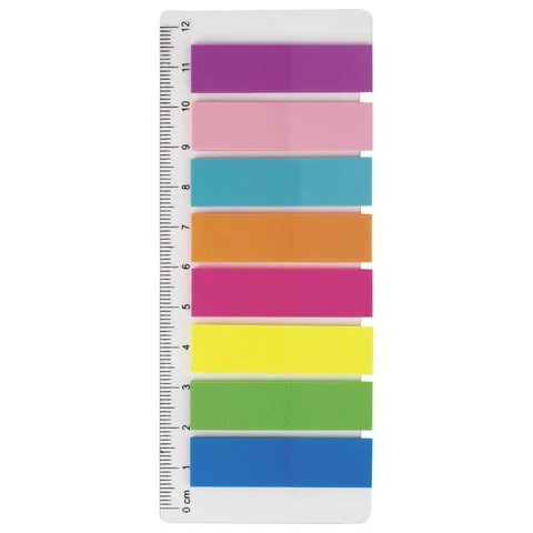 Клейкие закладки пластиковые Brauberg 45х12мм, 8цветов по 25 листов, на пластиковой линейке 12см