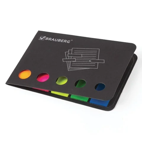 Клейкие закладки пластиковые Brauberg 12х50мм, 5 цветов по 20 листов, в книжке