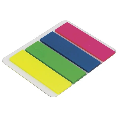 Набор пластиковых закладок 4 неоновых цветов размером 45х12 мм состоит из 100 листов, по 25 закладок...