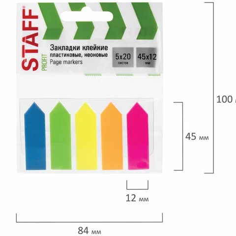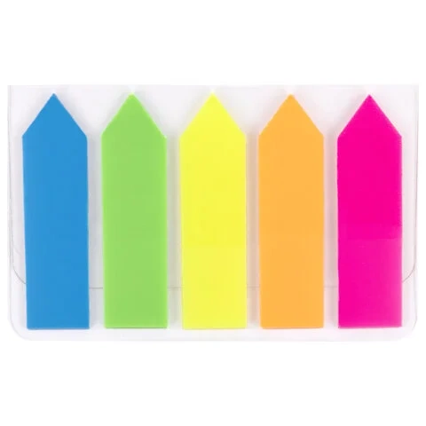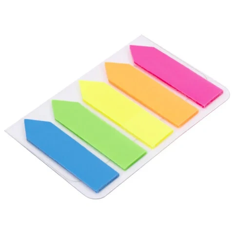 Набор пластиковых закладок 5 неоновых цветов размером 42х12 мм состоит из 100 листов, по 20 закладок...