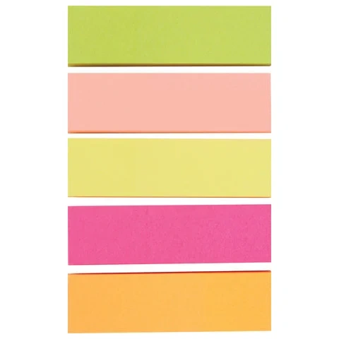 Набор бумажных закладок 5 неоновых цветов размером 50х14 мм состоит из 250 листов, по 50 закладок ка...