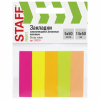 Клейкие закладки бумажные Staff Неоновые 50х14мм, 5 цветов по 50 листов