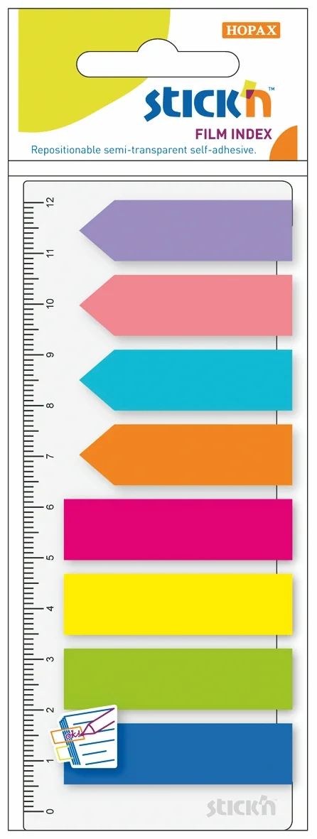 Клейкие закладки пластиковые Stick'n 45х12мм, 8цветов по 25 листов, неоновые