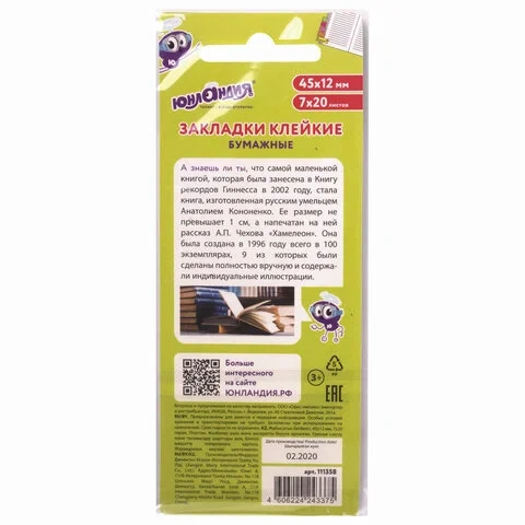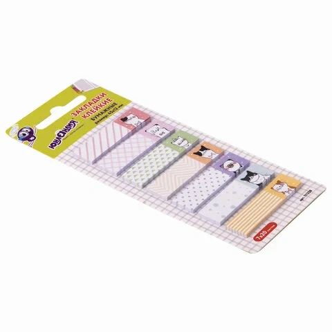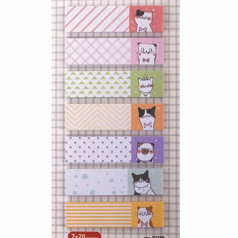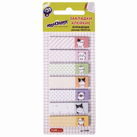 Клейкие закладки пластиковые Юнландия Котики 7 цветов, 45х12мм, 140шт