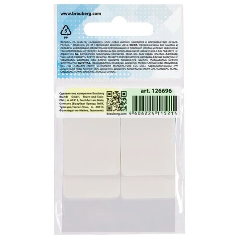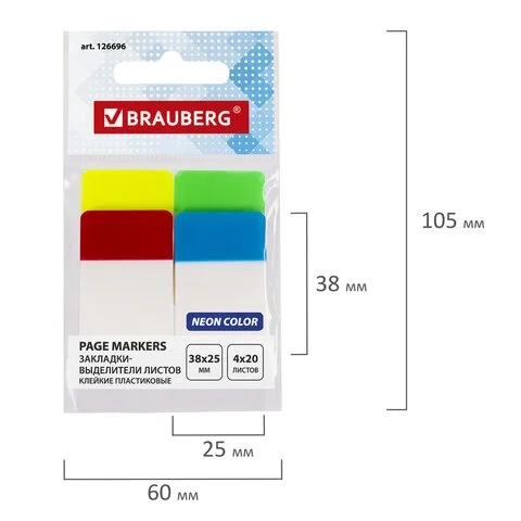 Клейкие закладки пластиковые Brauberg 38х25мм, 4цвета по 20 листов