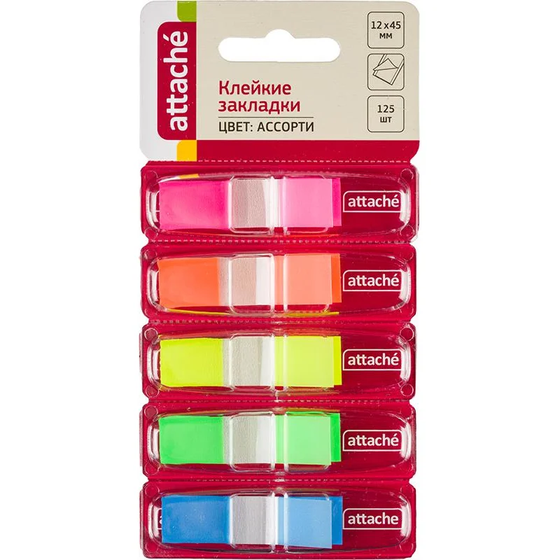 Клейкие закладки пластиковые Attache 5 цветов, 12х45мм, 4х25 листов