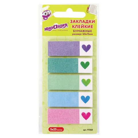 Клейкие закладки бумажные Юнландия Сердечки, 45х15мм, 125 листов