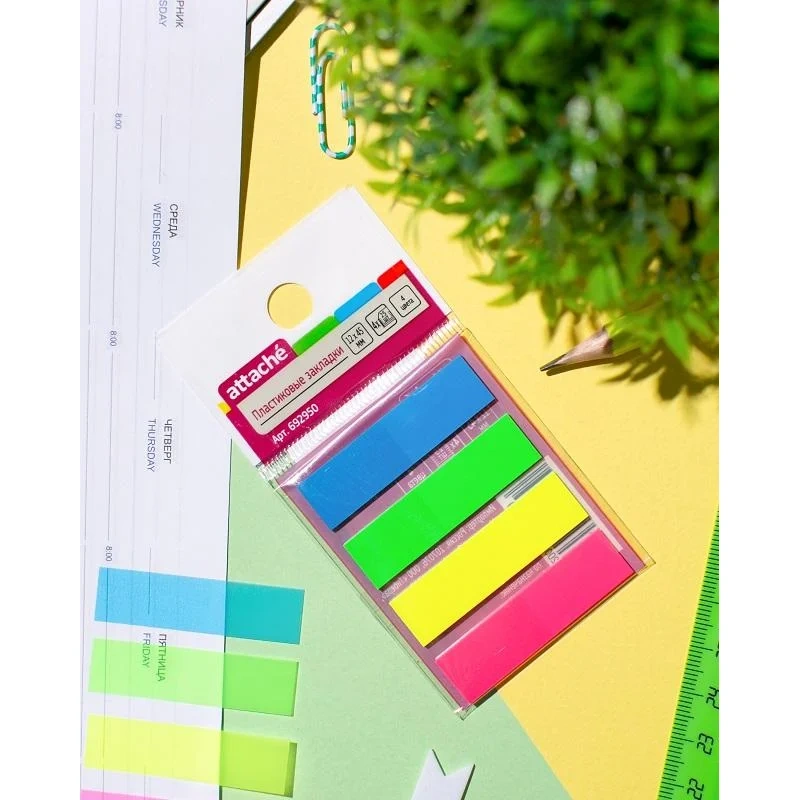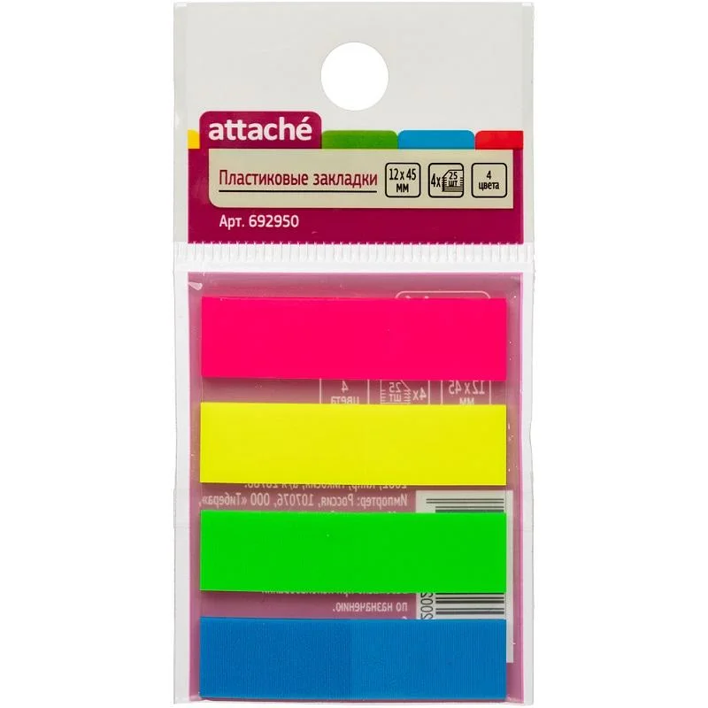 Клейкие закладки пластиковые Attache 4 цвета, 12х45 мм, 100 листов