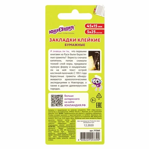 Клейкие закладки бумажные Brauberg 45х15мм, 5цветов по 20 листов