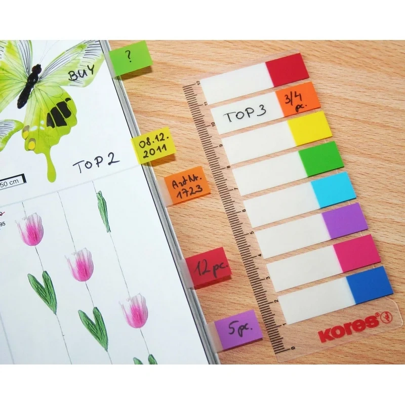 Клейкие закладки пластиковые Kores Film 45х12мм, 5цветов по 25 листов, в диспенсере