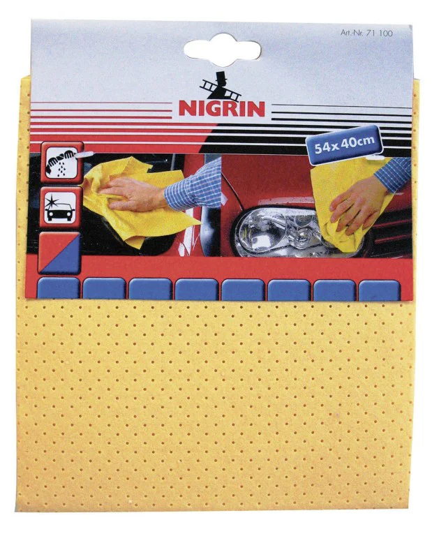 Искусственная замша Nigrin — аксессуар, предназначенный для ухода за автомобилем. Изделие будет полезно при мойке, протирке и полировке транспортного средства. Благодаря наличию множества ворсинок салфетка с легкостью устраняет загрязнения с поверхностей машины, в том числе глянцевых. Она также хорошо впитывает влагу. Салфетка способна справиться с засохшими потеками воды, пятнами и чистящими средствами. При этом искусственная замша Nigrin демонстрирует деликатное отношение к поверхностям, не оставляет потертостей, царапин, а также разводов.