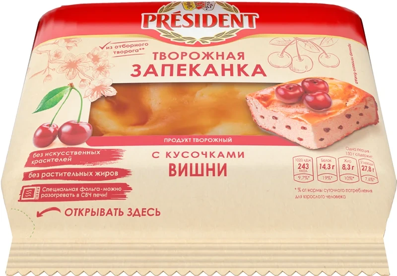 Классическое блюдо из творога с новыми вишневыми нотками, которым можно насладиться как в холодном, так и в горячем виде, разогрев в духовке или микроволновой печи. Нежная и плотная структура запеканки с настоящими кусочками вишни станет отличным питательным завтраком или перекусом на работе. Запеканку можно полить любимым вареньем, дополнить свежими или консервированными фруктами.