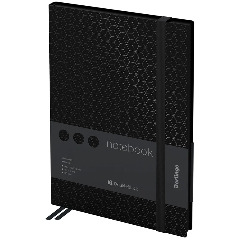 Записная книжка А5 80л., кожзам, Berlingo 'DoubleBlack', черный срез, черная, с рисунком