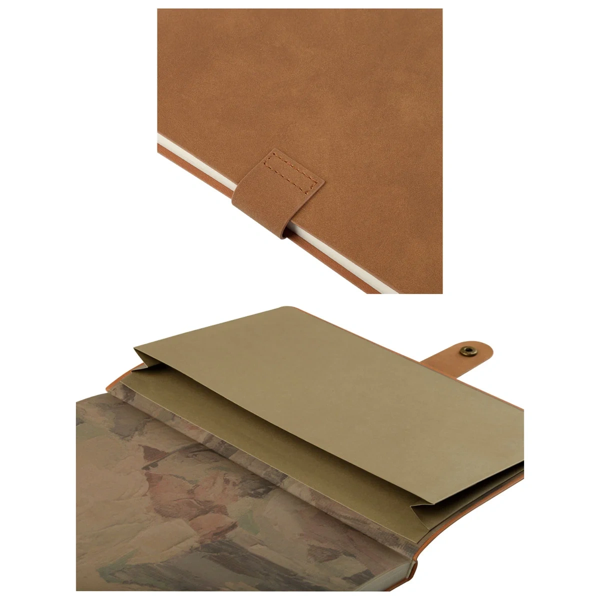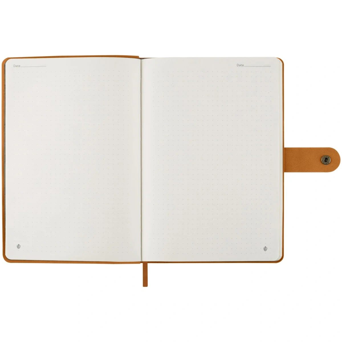 Внутренний блок состоит из 80 листов тонированной бумаги повышенной плотности 80 г/кв.м. Книжка закрывается на кнопку, что дополнительно защищает листы от замятий и загрязнений. Предусмотрен кармашек для заметок и визиток. Закладка-ляссе позволяет открывать записную книжку сразу на нужной странице. Изделие поставляется в индивидуальной упаковке.