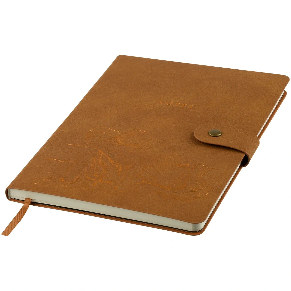 Обложка из экокожи дополнена фольгированным тиснением. В изделии используется интегральный (лайт) переплёт. Обложка записной книжки лёгкая, но при этом прочная и надёжная.