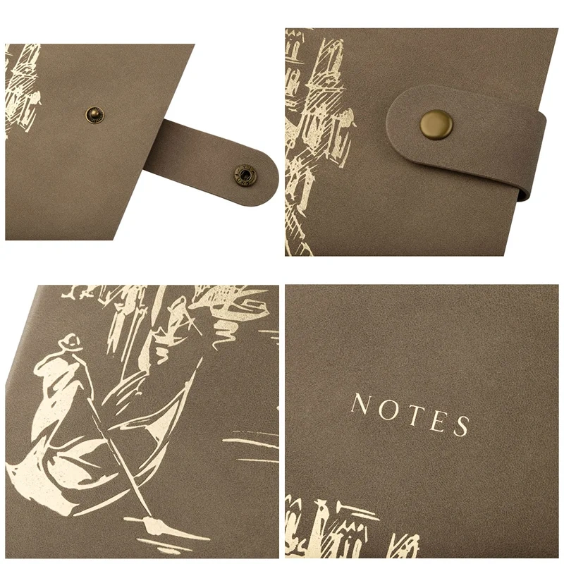 Обложка из экокожи дополнена фольгированным тиснением. В изделии используется интегральный (лайт) переплёт. Обложка записной книжки лёгкая, но при этом прочная и надёжная.