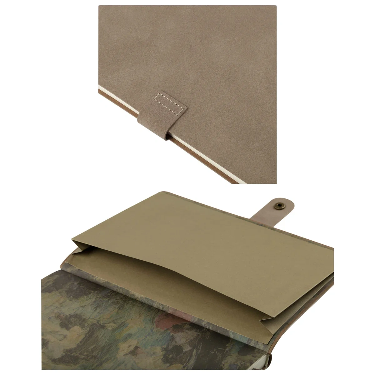 Внутренний блок состоит из 80 листов тонированной бумаги повышенной плотности 80 г/кв.м. Книжка закрывается на кнопку, что дополнительно защищает листы от замятий и загрязнений. Предусмотрен кармашек для заметок и визиток. Закладка-ляссе позволяет открывать записную книжку сразу на нужной странице. Изделие поставляется в индивидуальной упаковке.