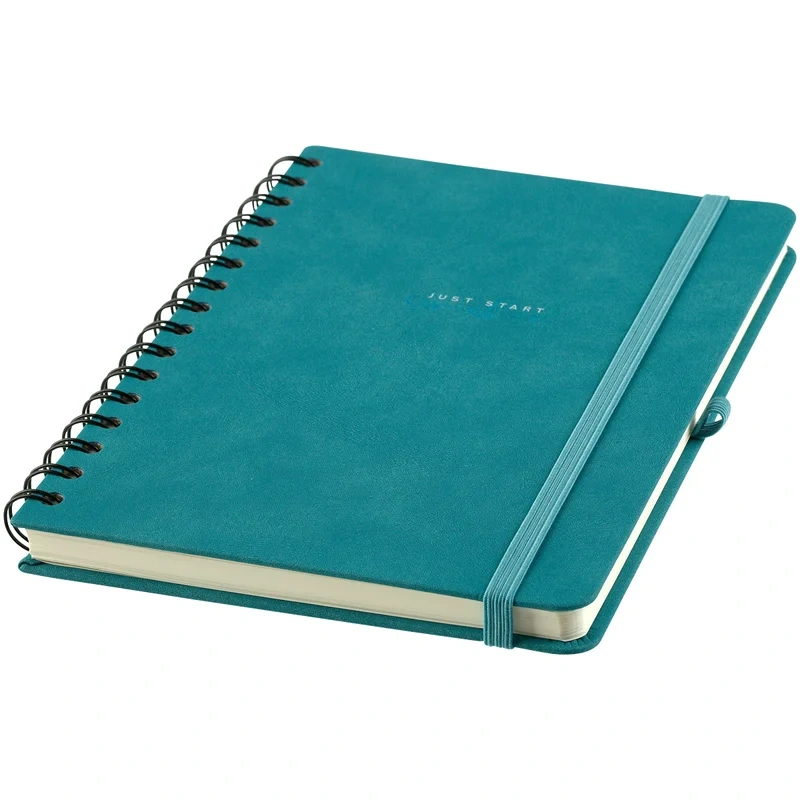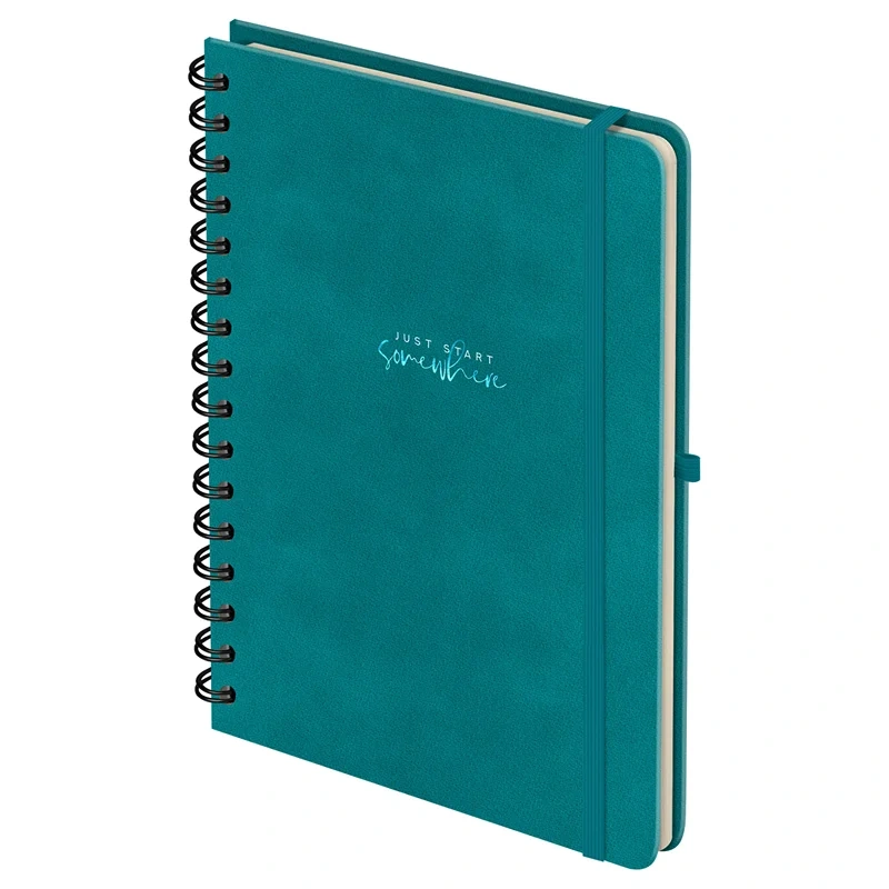 Записная книжка А5 96л., кожзам, на гребне, Greenwich Line 'Just start. Cyan', твердая обложка, тисн