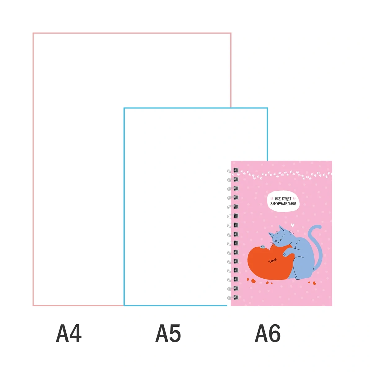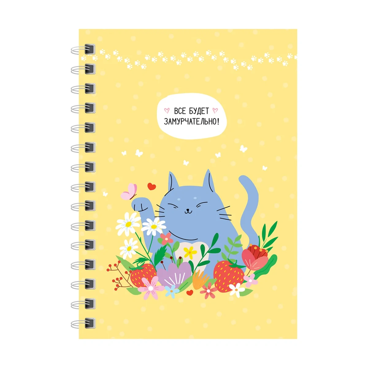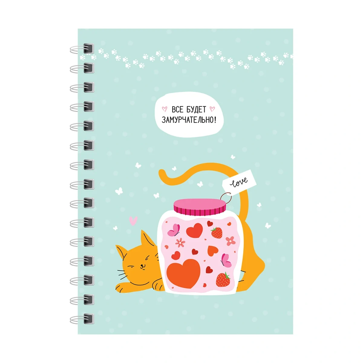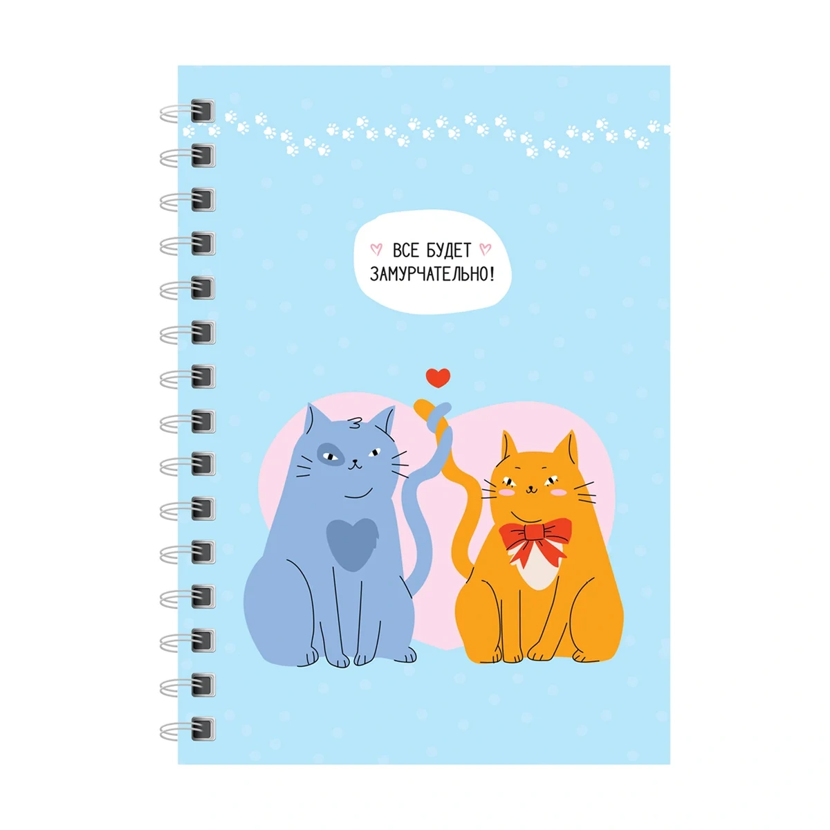 Записная книжка ArtSpace «Замурчательная история» формата А6 на гребне – лучший друг для записи важных мыслей и дел. Внутренний блок плотностью 60г/м? состоит из 120 листов офсетной бумаги белого цвета с линовкой в клетку. Записная книжка представлена в размере 100*145 мм. Обложка изготовлена из твёрдого прочного картона с матовой ламинацией.