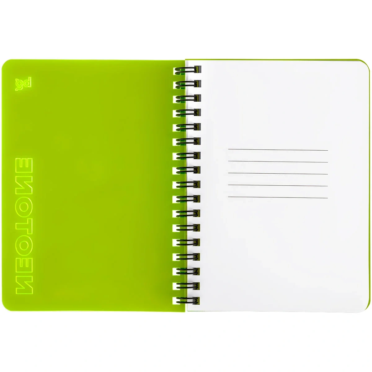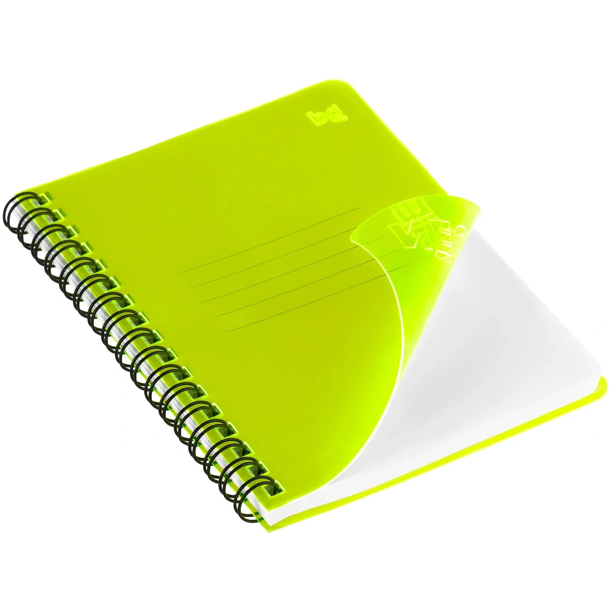 Обложка изготовлена из жёлтого полупрозрачного пластика. На срезе светится ярким неоновым цветом. Изделие компактного размера удобно брать с собой, оно легко помещается в сумке или кармане.
