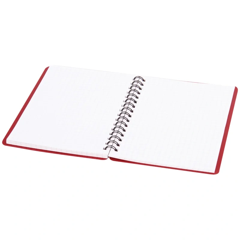 Записная книжка формата А6. Вид крепления -гребень. Обложка -пластиковая. Внутренний блок -офсетный, клетка.