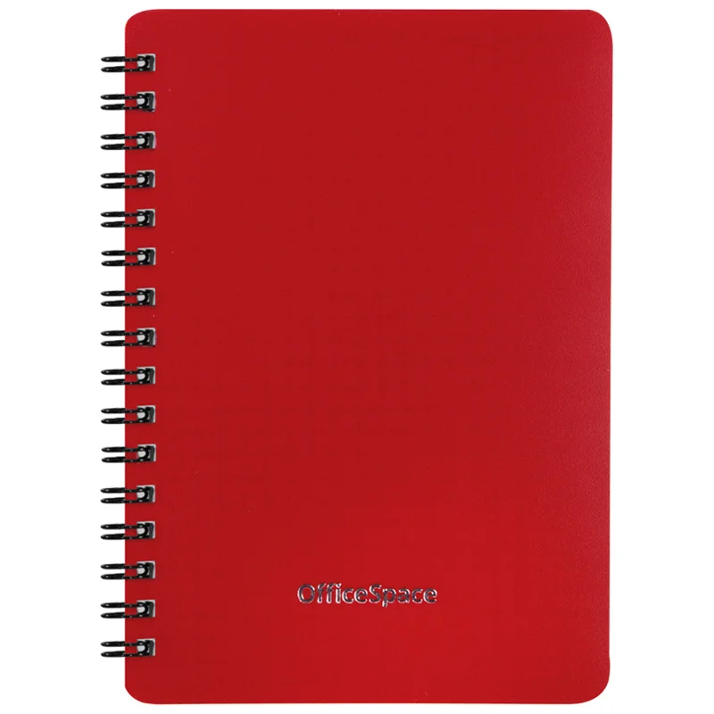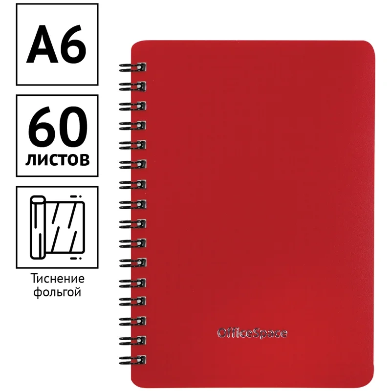 Записная книжка А6 60л., на гребне OfficeSpace 'Base', красная пластиковая обложка