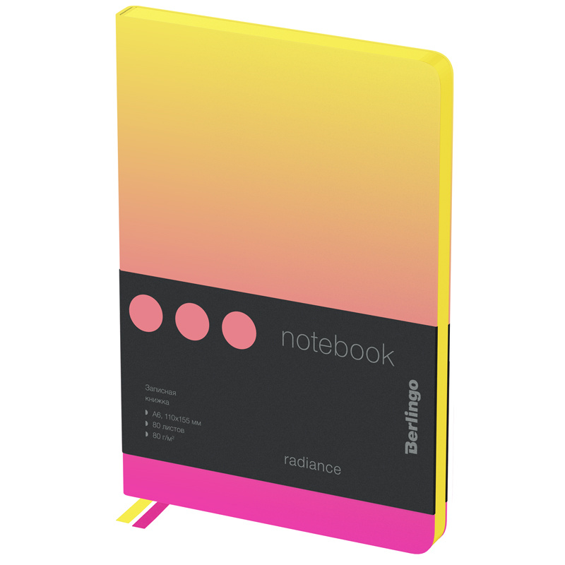 Записная книжка А6 80л., кожзам, Berlingo 'Radiance', черный срез, желтый/розовый градиент